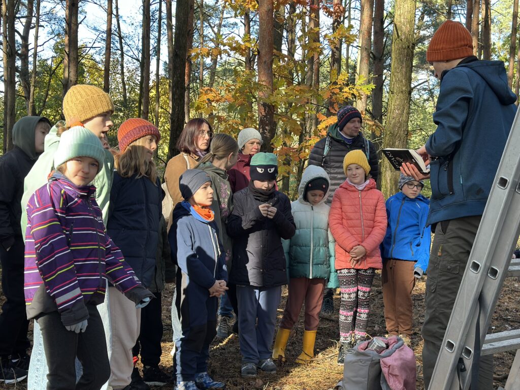 W niedzielę, 19 października, odbyło się ostatnie spotkanie z dofinansowanego z budżetu Gminy Klembów projektu „Leśne Przygody”. Tym razem postanowiliśmy sprawdzić, czy i kto zamieszkał w budowanych w zeszłym roku w michałowskim lesie ptasich rezydencjach, a naszym przewodnikiem był ornitolog – pan Ignacy Stadnicki.