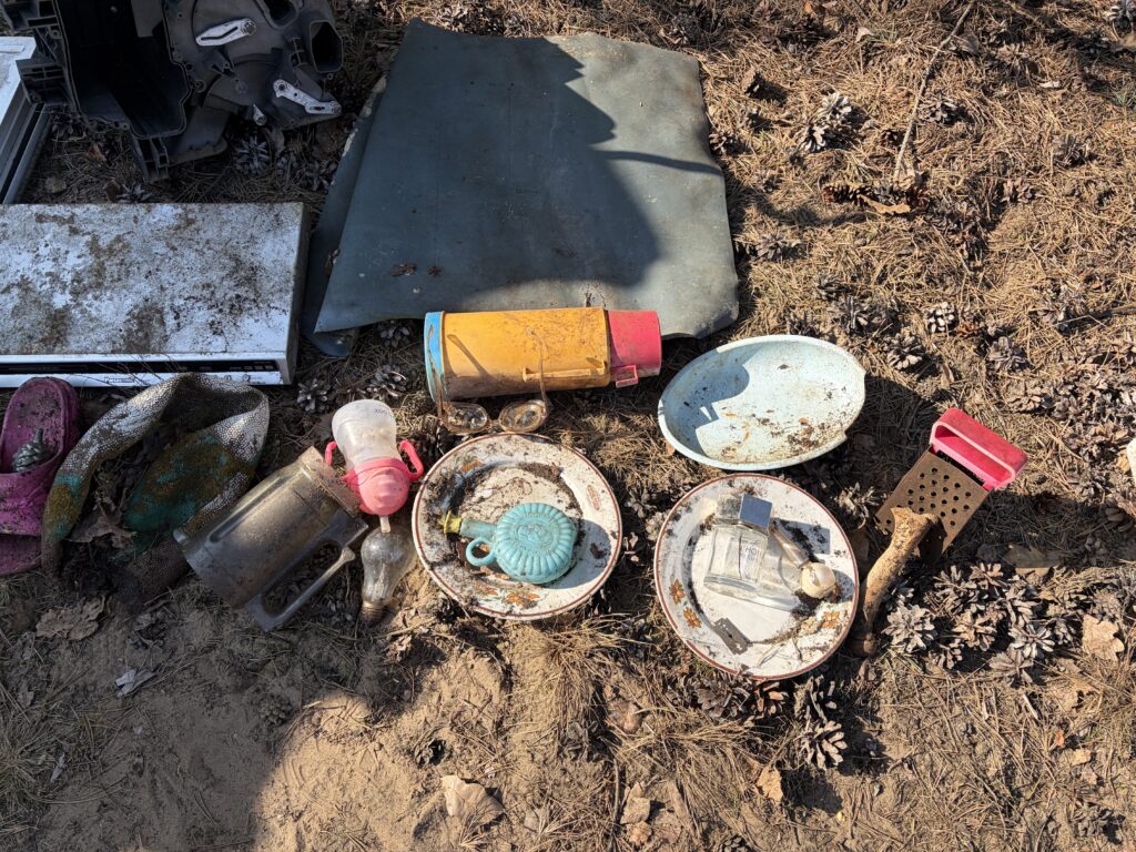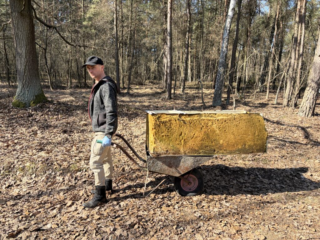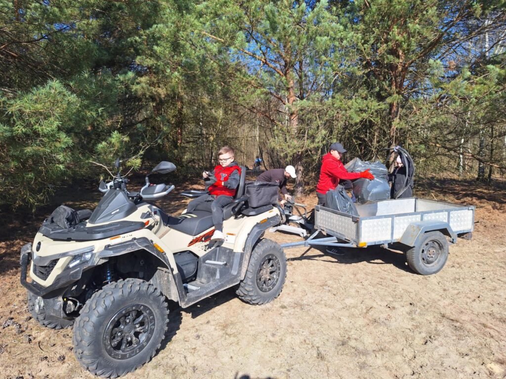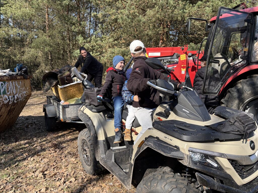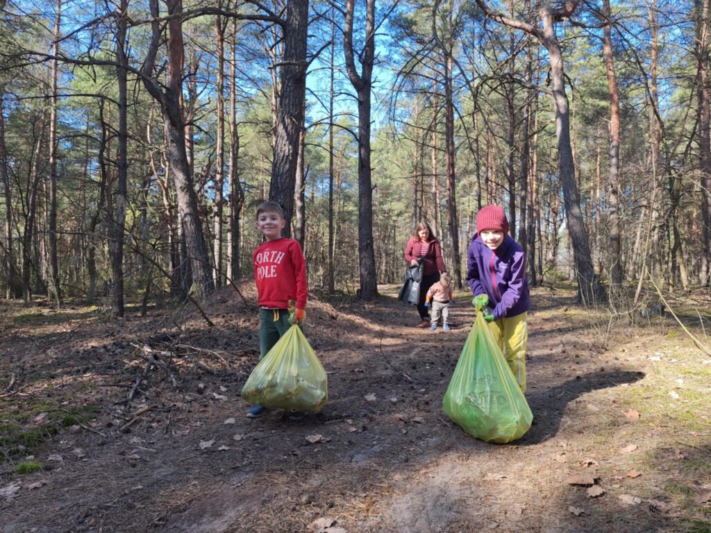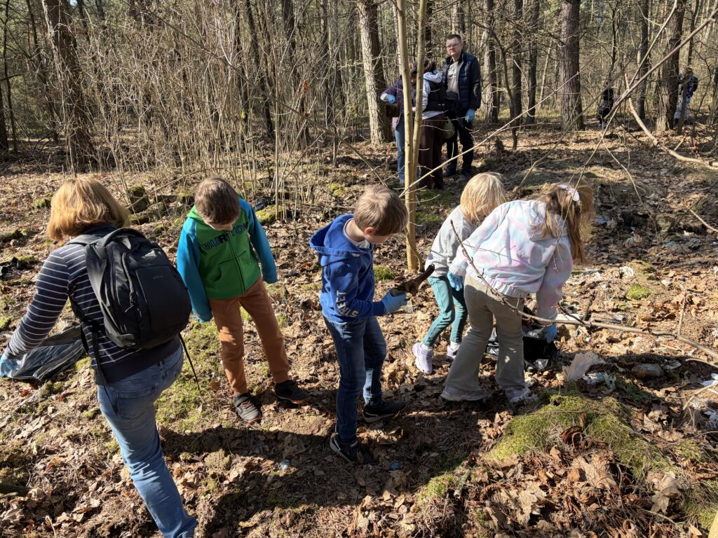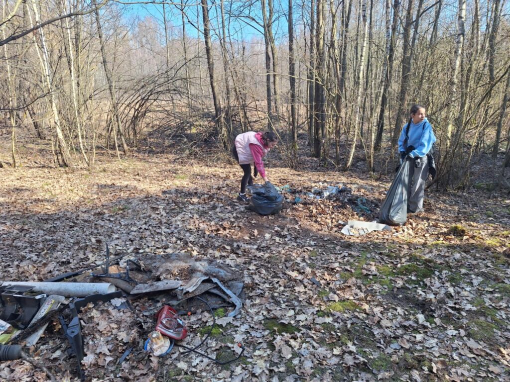 A było to nie lada wyzwanie – począwszy od wielkiej góry śmieci na skraju lasu, po mniejsze składowiska w dalszej jego części. I chociaż na pierwszy rzut oka ilość zalegających odpadów wydawała się nie do ogarnięcia, to – podobnie jak miało to miejsce jesienią w Kruszu – mieliśmy okazję przekonać się, że w grupie można zdziałać cuda. Kontenery w mig zostały zapełnione, a las odzyskał swoją naturalną urodę.